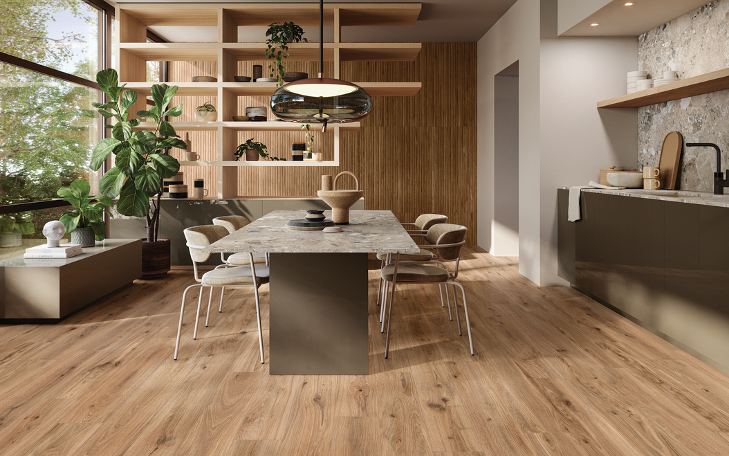 Maximus Flake Stone collection, crafted using advanced FlakeSet Technology, redefines elegance by emulating the natural beauty of stone. With its realistic flake design seamlessly integrated into each tile, it offers endless possibilities for creating spaces that are both visually stunning and highly livable. Maximus Flake Stone is an agglomerate, meaning a cement-based material with inclusions of flakes in different sizes and colors.